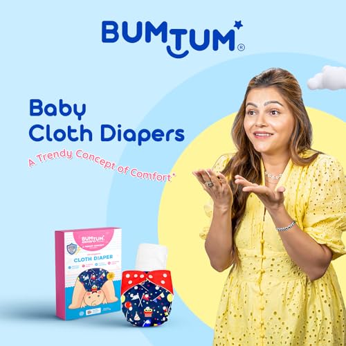 Bumtum Baby Diaper | 0-3 Yrs Baby Freesize | Pack of 1, New Born Baby Diaper, Cloth Diaper, Waterproof Reusable Diaper, 5hrs Absorbency, Ultrahygiene, Washable, Cotton, Extra Soft (Quirky Bombshell)