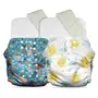 Mother Sparsh Plant Powered Cloth Diaper for Babies-Free Size | Medical Grade Fabric with 100% Organic Cotton | 13 Layer Breathable Soaker With Built-In Booster Pad | Pack of 2 (Pebbles&S.Sun)