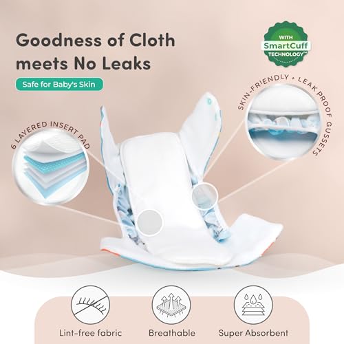 Washable & Absorbent - These cloth diapers are washable. You can wash the outer cover along with the inner soaker pad in a washing machine or hand wash them. These can be reused for years. The inserts are highly absorbent and will keep your baby dry for a