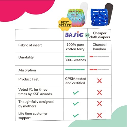 BASIC cloth diaper that fis babies from 3 months to 3 years & Quick Dry Foldable dry feel pad/insert. Lasts upto 3 hours for an average wetting babies