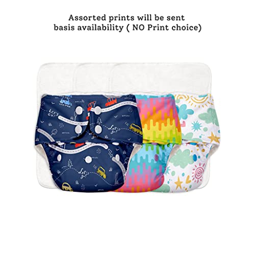 SuperBottoms BASIC - Assorted Pack of 3 Cloth Diaper For Baby | Washable & Reusable Cotton Cloth Diaper | 0-3 Years | Freesize | Adjustable | Reduces Rash | With Quick Dry Pad/Insert