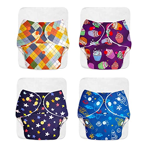 superbottoms Basic Easy-Pack Of 4 Diaper+4 Inserts, Combo Pack Of Assorted Freesize Washable & Reusable Cloth Diaper With Dry Feel Soakers, 5-17 Kilograms, Option 3, Infant