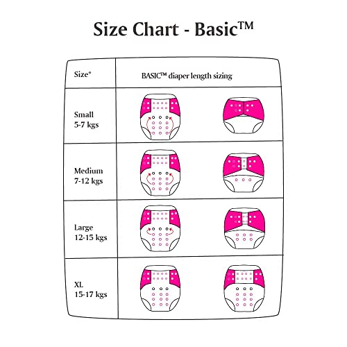 Adjustable Snaps BASIC Cloth Diaper has a unique snap system that allows it to fit a baby from 3 months to 3 years. Just adjust resize and wear. Its super easy! Light On Pocket It is a thoughtfully designed day diaper that comes at a super economical pric