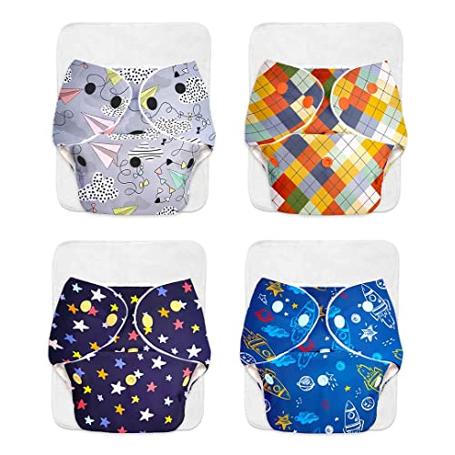 SuperBottoms BASIC Pack of 4 Freesize Adjustable, Washable and Reusable Cloth Diaper for babies 0-3 Years | One Size Adjustable Diapers (Pack of 4 diapers+ 4 inserts) Assorted prints