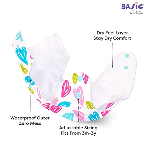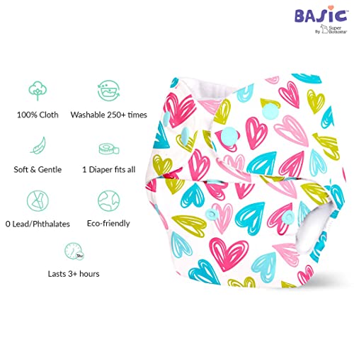 SuperBottoms BASIC Reusable Cloth Diaper with NEW Quick Dry UltraThin pads | 100% cloth Freesize Diapers for baby 0-3 Yrs |Stay Dry & Lasts up to 3Hrs | Trim Fitting, Dries 2times faster | Hearts