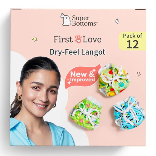 HomeBabyDiaperingCloth DiapersSuperbottoms First Love Dryfeel Langot For Newborn Baby | No Mess Langot | Premium Cotton Padding (No Sponge) | Nappy for Diaper-free Time | 0-9M | Newborn Essentials | Day Dreamer | 5-10KG | 12Pcs