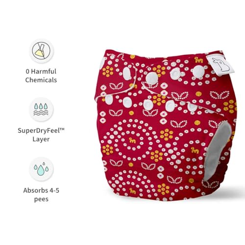 SuperBottoms UNO Freesize Cloth Diaper | Cloth diaper for babies 0 to 3 years | Washable & Reusable cloth diaper | Comes with cloth diaper inserts | 1 Organic cotton Soaker (Li'l Crush)