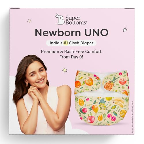 HomeBabyDiaperingCloth DiapersSuperBottoms Newborn UNO Premium Cloth Diaper with Insert (0 to 3m) | Washable & Reusable Diaper with Organic Cotton Pad | Superior Absorption | Waterproof | SuperDryFeel™ Layer | Super Soft & Gentle