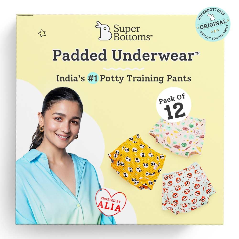 superbottoms Unisex Padded Underwear|For Potty Training & Mess-Free Diaper-Free Time|Prevents Pee Puddles|3 Layers Of Premium Cotton Padding (No Sponge)|(Jungle Jam, Size: 1, Pack Of 12)