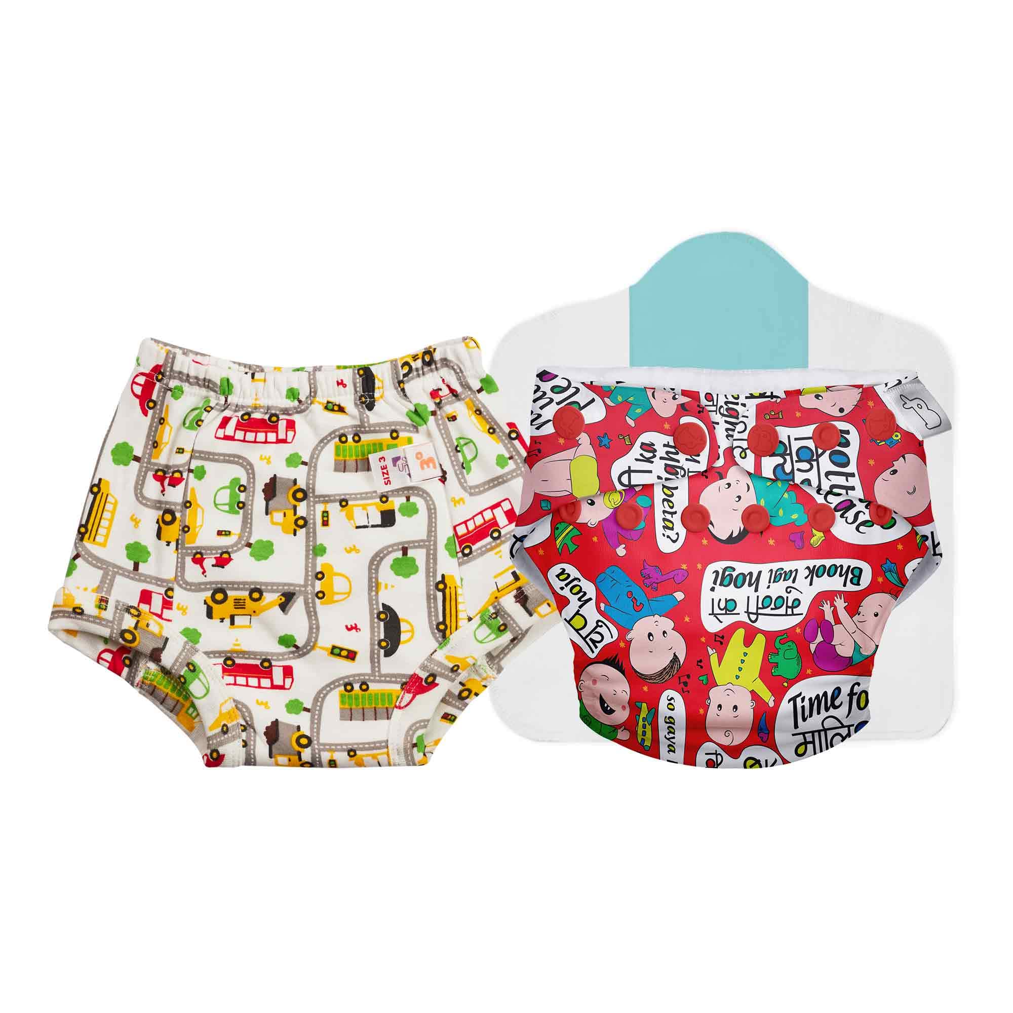 Superbottoms Potty Training Underwear Unisex (Size 0)(9M-12M) & UNO Freesize Cloth Diaper(3M to 3Y) | Washable & Reusable| 1 Diaper and 1 Organic cotton Soaker