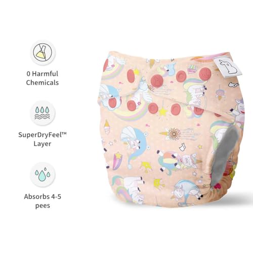 SuperBottoms UNO Freesize Cloth Diaper | Cloth diaper for babies 3M to 3Y | Washable & Reusable cloth diaper | Comes with 1 Outer Shell + 1 Organic Cotton Pad + 1 Booster | Unicorn