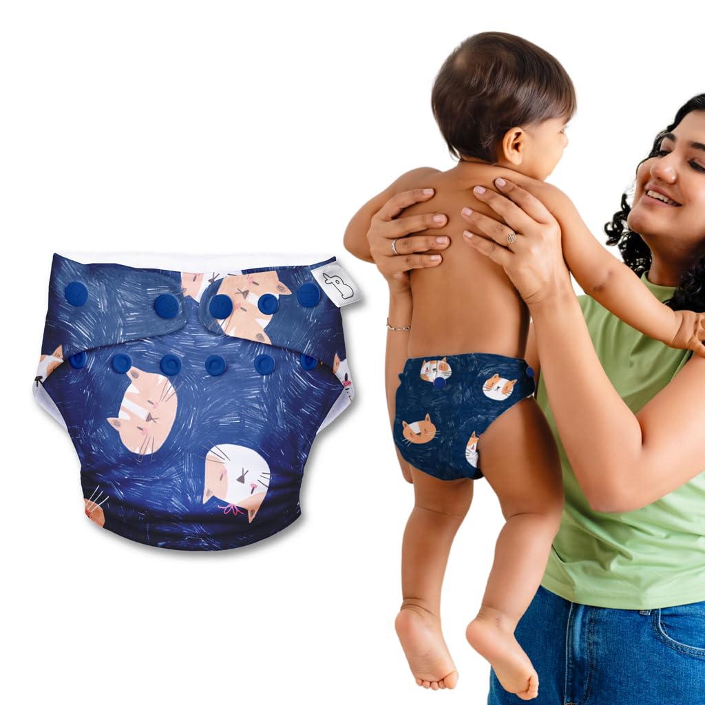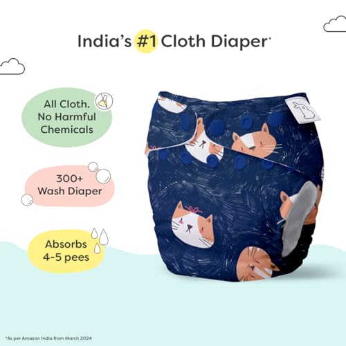 SuperBottoms UNO - Freesize Washable & Reusable waterproof Adjustable cloth diaper for babies from 5-17kgs-Pack of 1 cloth diaper with Organic cotton Pad(Good Cattitude :)