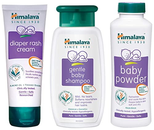Himalaya Baby Powder (400g) & Gentle Baby Shampoo (200ml) & Himalaya Diaper Rash Cream,100gm