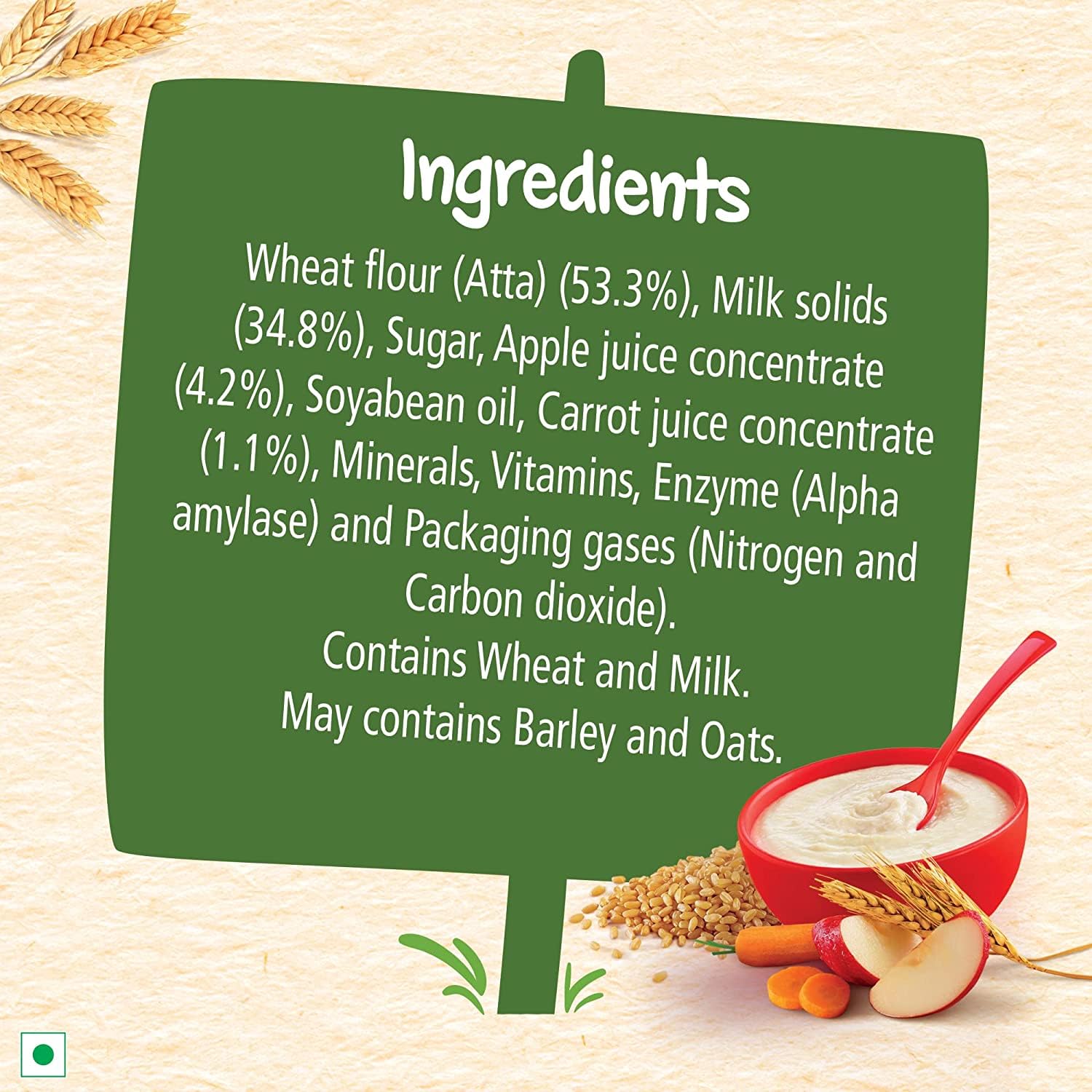 WHEAT APPLE CARROT: This wheat apple carrot baby food is packed with the goodness of cereal milk fruit & vegetable