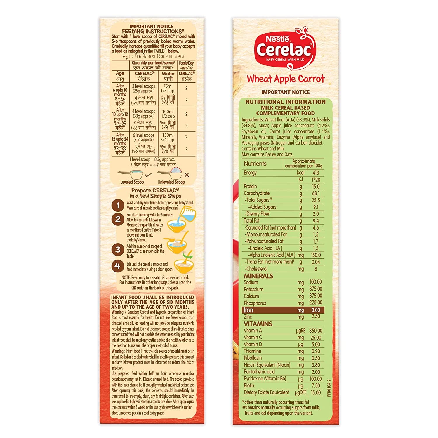 Nestle CERELAC Baby Cereal with Milk Wheat Apple Carrot Stage 1 From 6 to 24 Months Source of Iron &