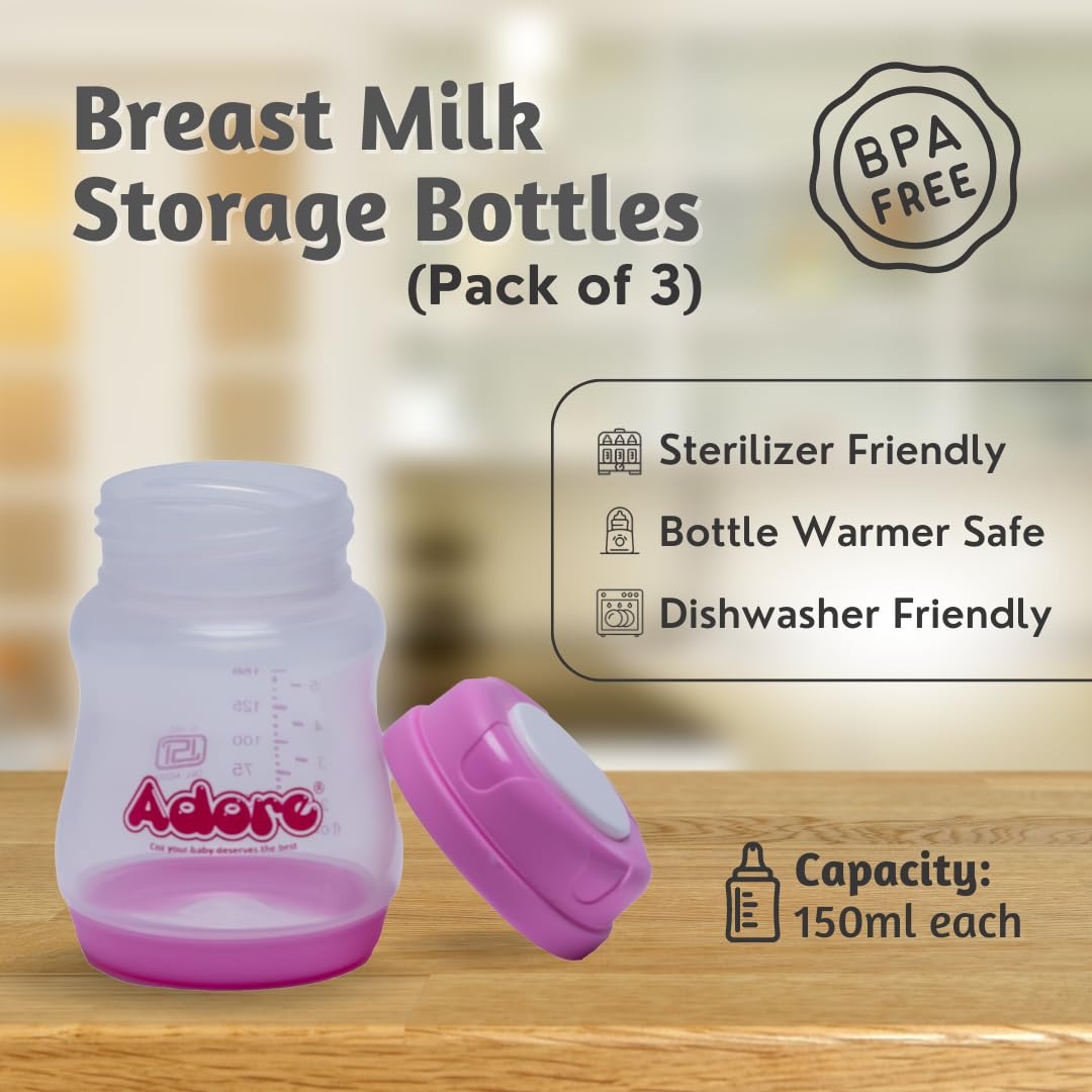 Adore Breast Milk Storage Bottles (Pack of 3Multicolor)
