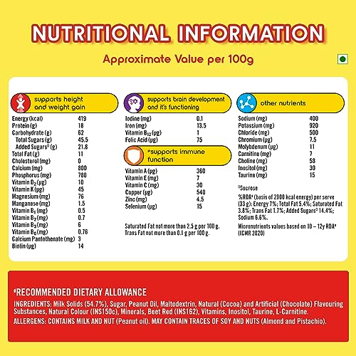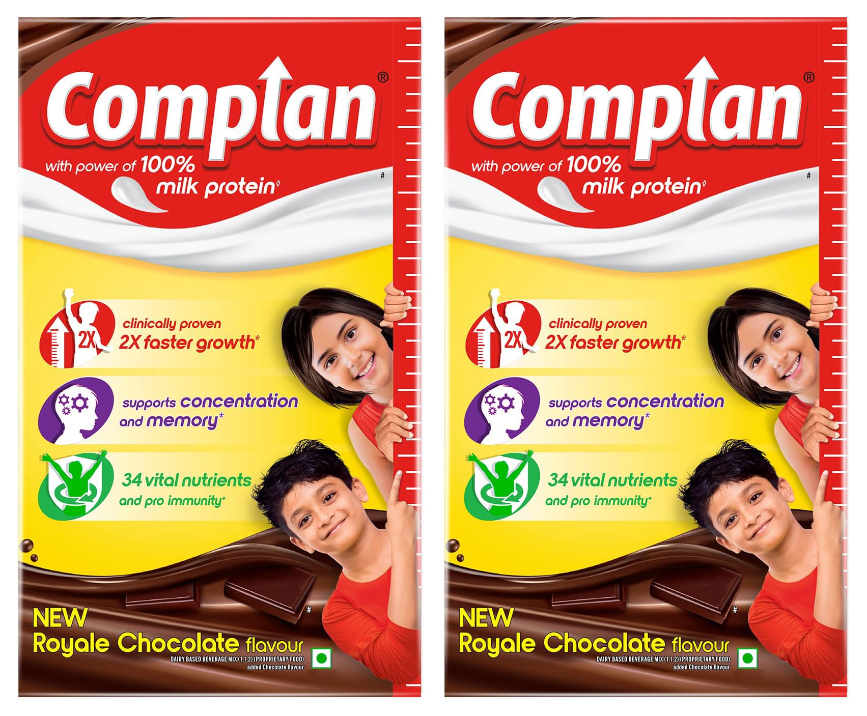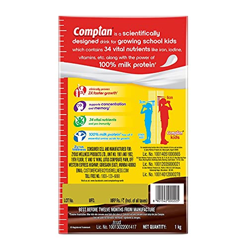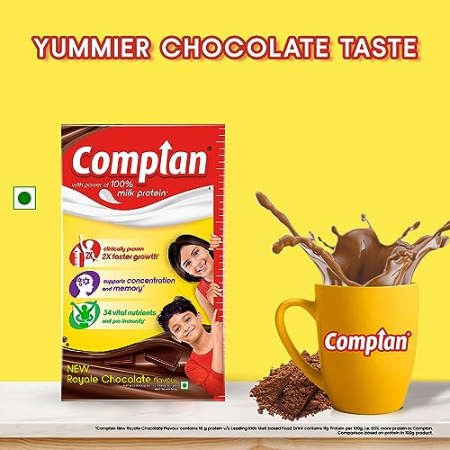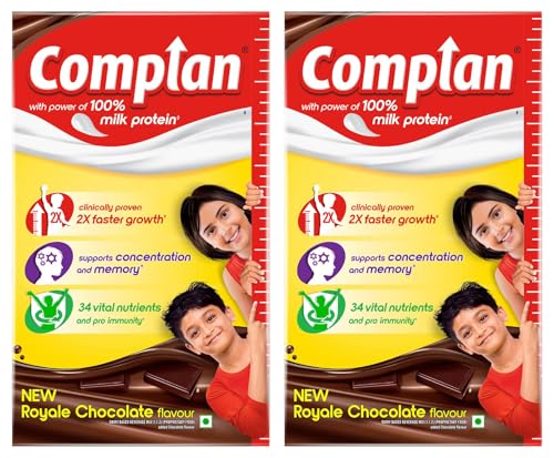 HomeBabyFeedingKids Food & SupplementComplan Nutrition Drink Powder for Children, Royale Chocolate Flavour, 1 kg Carton | Nutrition drink for kids with protein & 34 vital nutrients (Pack of 2)