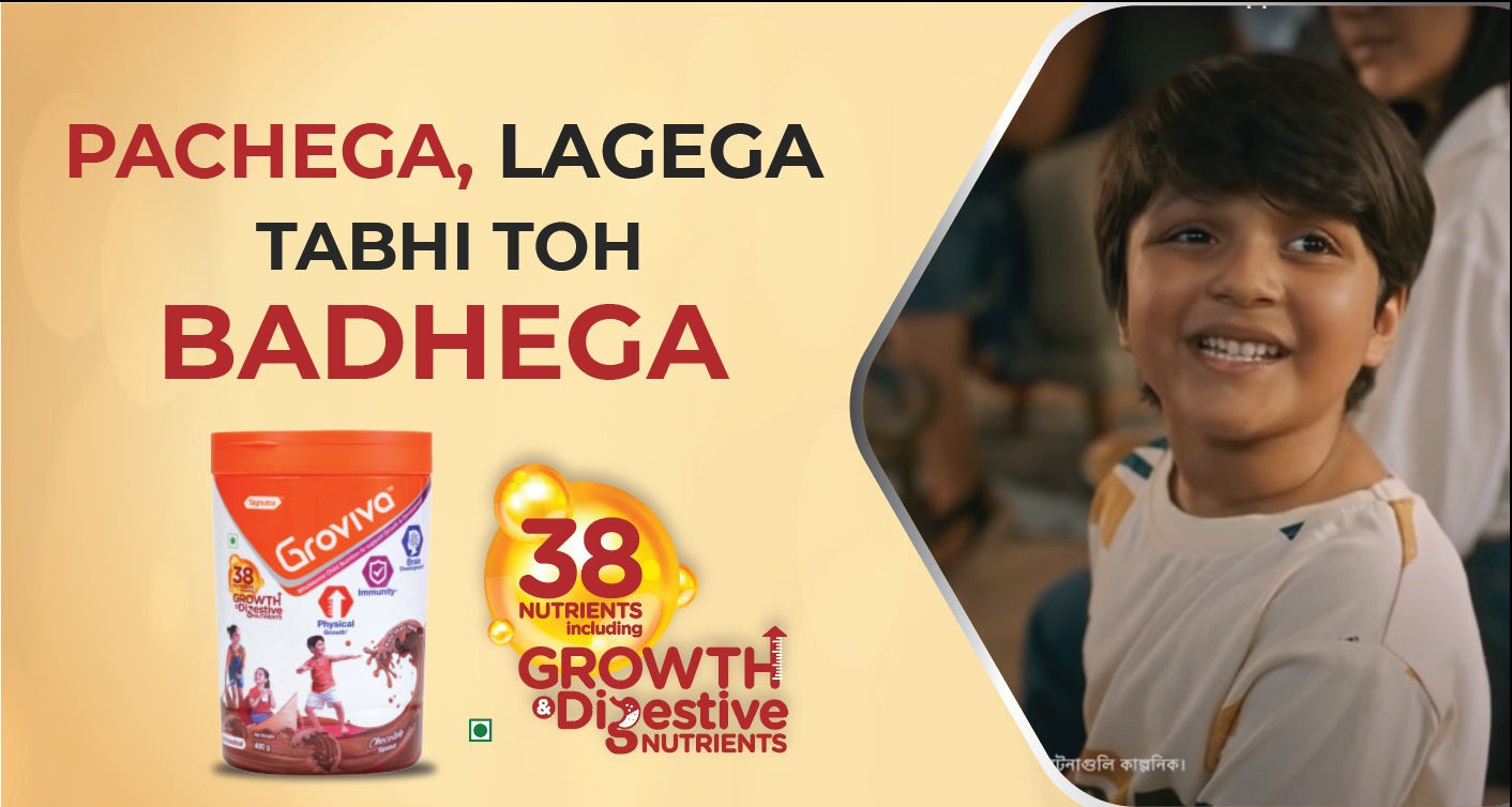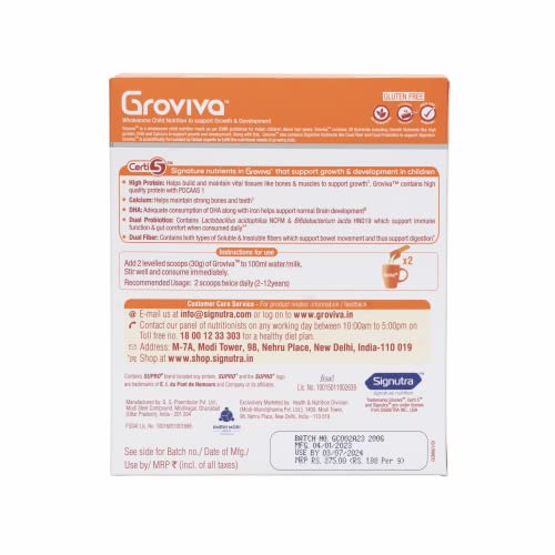 Groviva Customized Health Nutrition Drink made by Global Experts for Kids that supports Digestion, Physical Growth, Immunity and & Brain Development - Mango 200g BIB