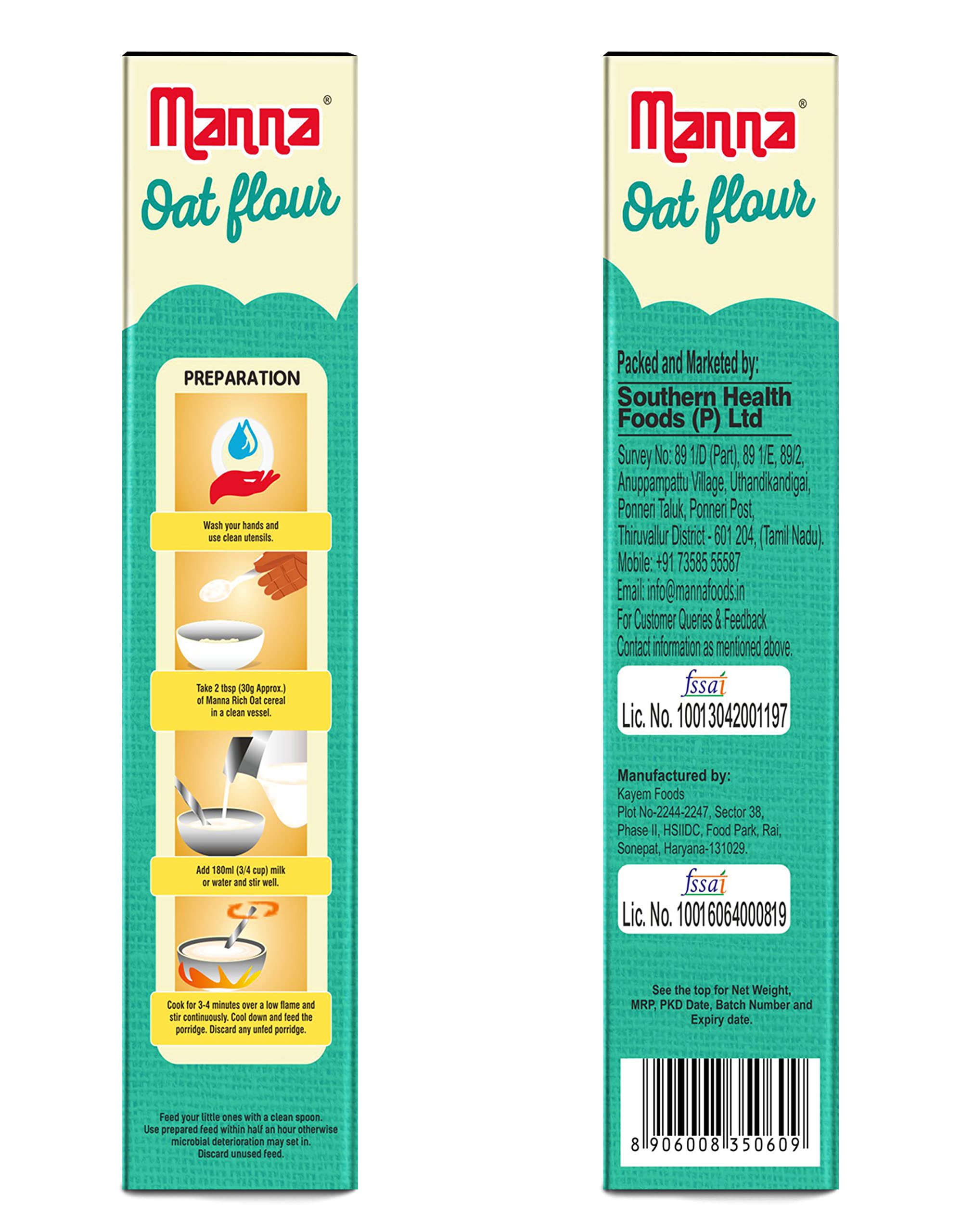 Manna Oat Powder 200g Baby Porridge Mix100% Natural Health Food No Added Color Flavor Additives