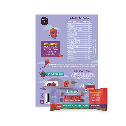 Timios Berry Bar Healthy Snack Natural Energy Food Product Ready to Eat for Toddlers - 4+ Years (Pac
