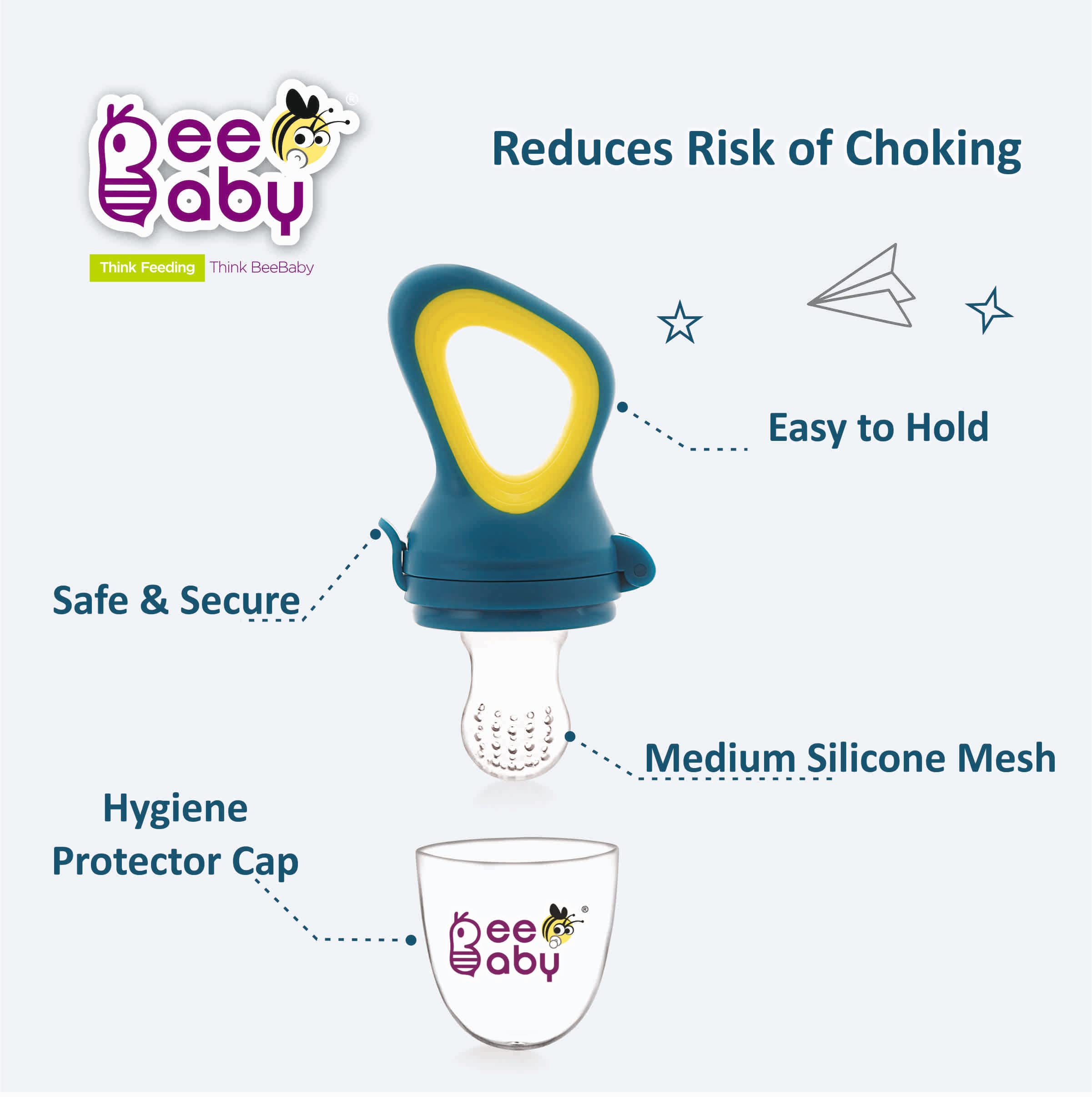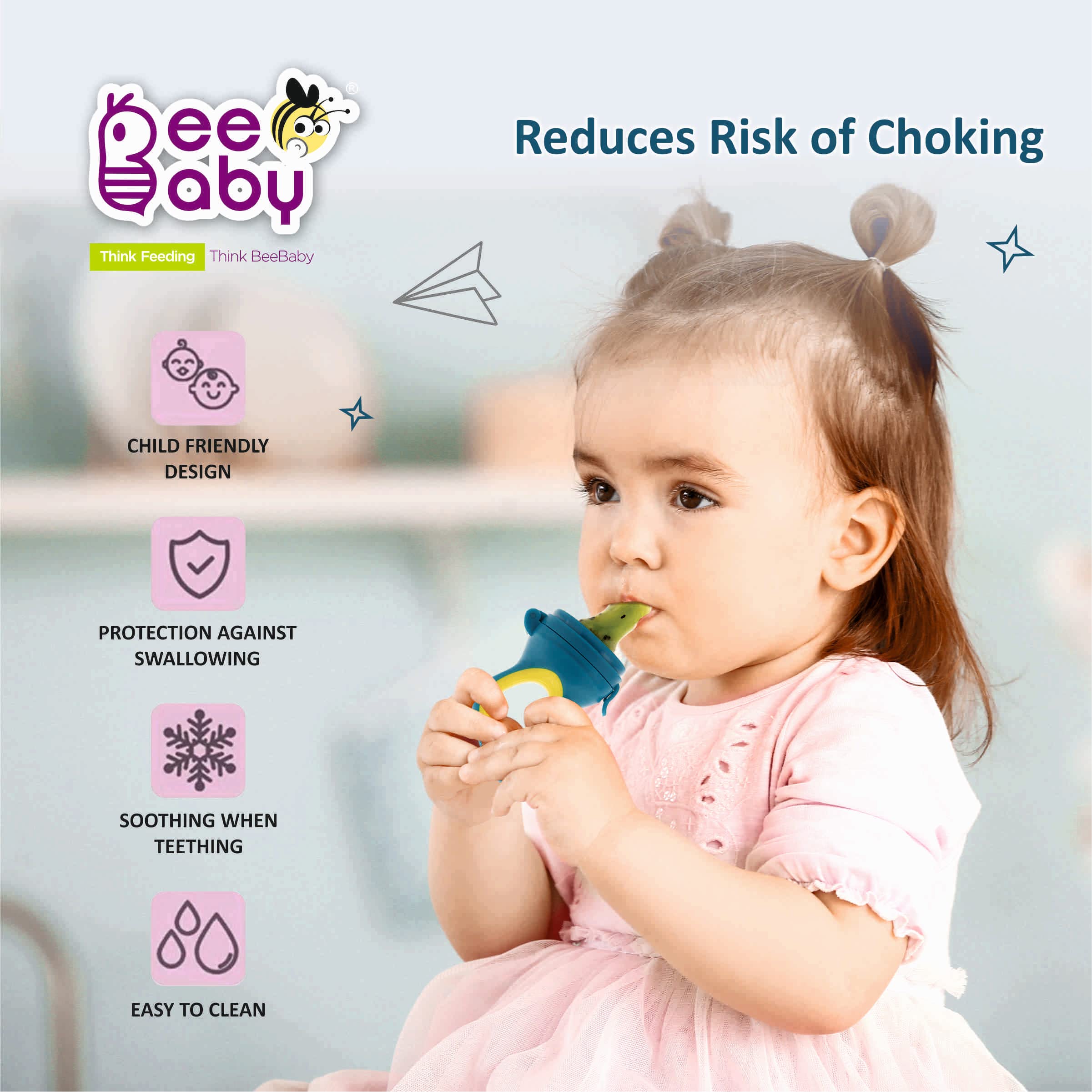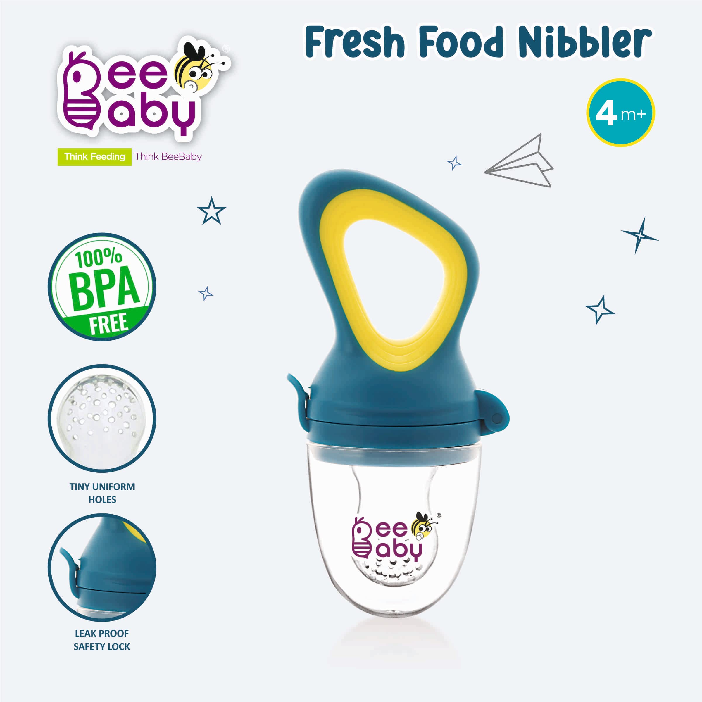 HomeBabyFeedingTeethers & PacifiersBeeBaby Soft Silicone Nibbler with Extra Mesh for Babies Baby Fruit & Food Feeder Anti Choking Fruit Pacifier Teether for Infant 100% BPA Free 3 Months+ (Fresh - Blue)