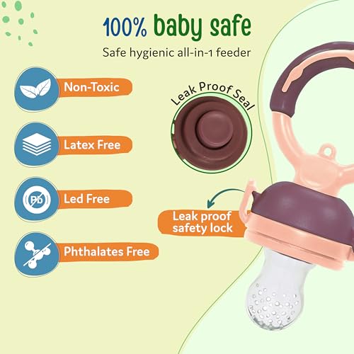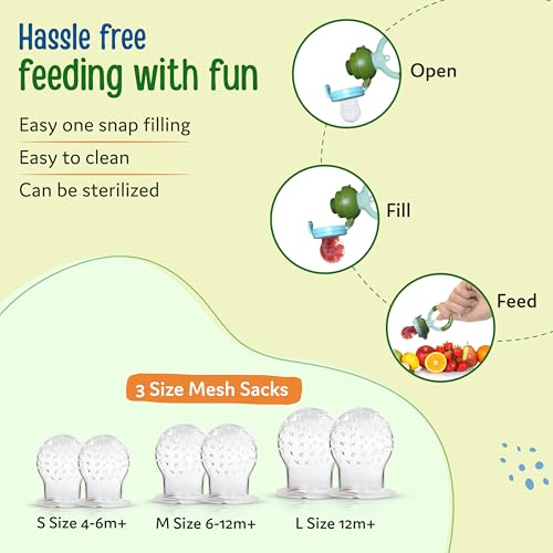 Luv Lap Baby food and fruit feeder twin pack with three Feeder Sack sizes BPA Free Green & Pink