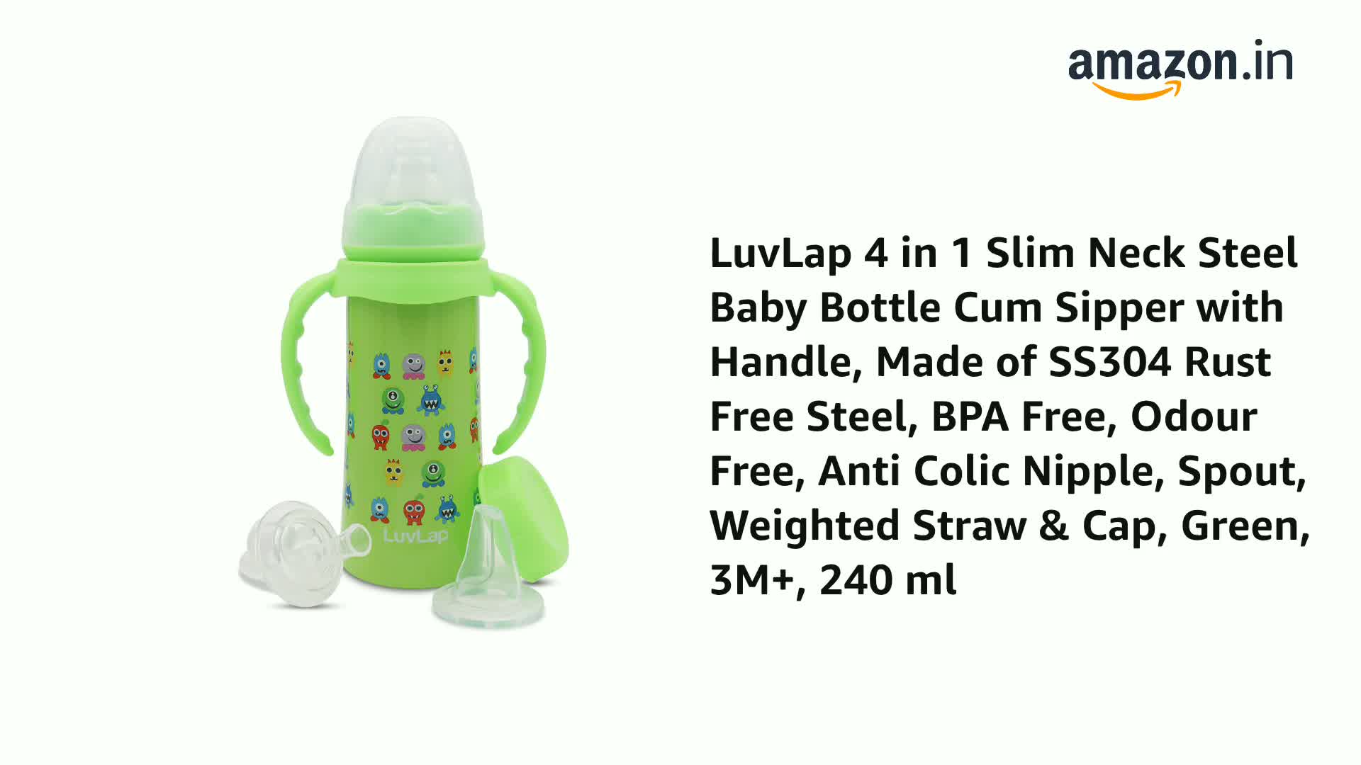 LuvLap 4 in 1 Slim Neck Steel Baby Bottle Cum Sipper with Handle Made of SS304 Rust Free Steel BPA