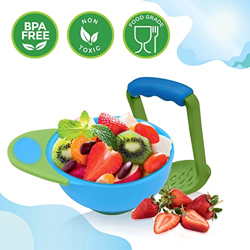LuvLap Baby Grinding & Feeding Bowl, Portable Masher, Serving Bowl for Weaning Food Preparation (Green & Blue) & Pearly Fruit Nibbler