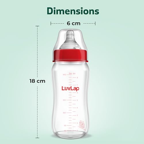 LuvLap Natura Flo Wide Neck Glass Feeding Bottle, New Born/Infants/Toddler Upto 3 Years, BPA Free, Ergonomic Shape is Easy to Hold, with Anti Colic Nipple, 250ml