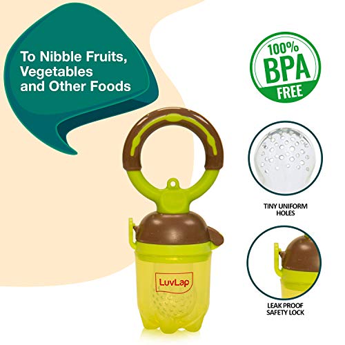 LuvLap Silicone Food/Fruit Nibbler with Extra Mesh Soft Pacifier/Feeder Teether Pearly Green BPA Fre
