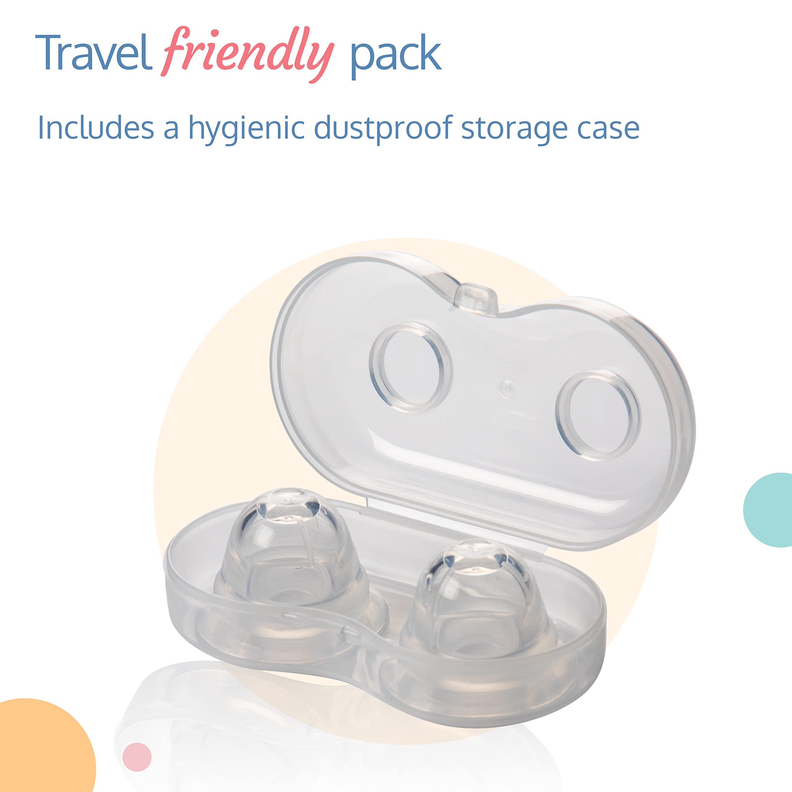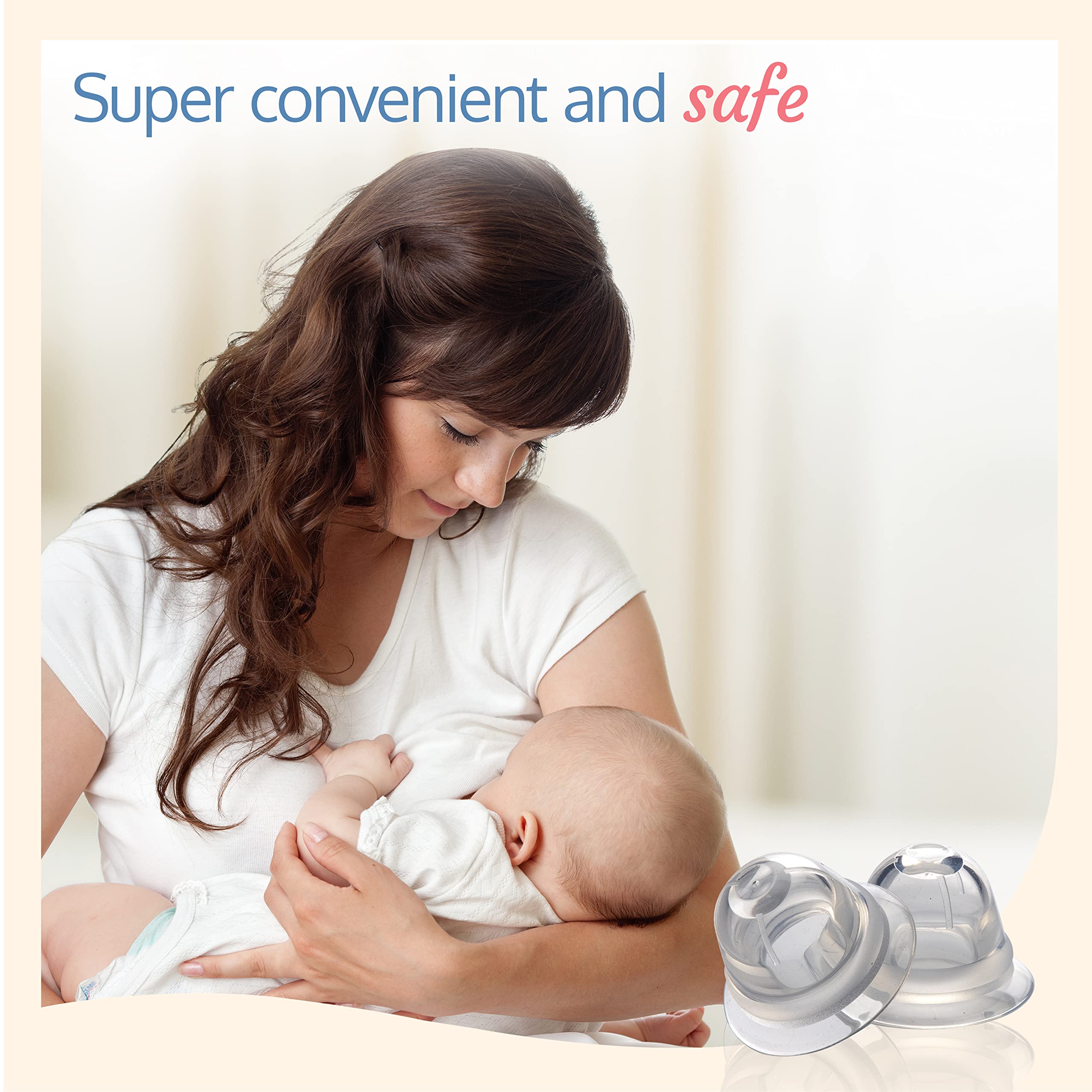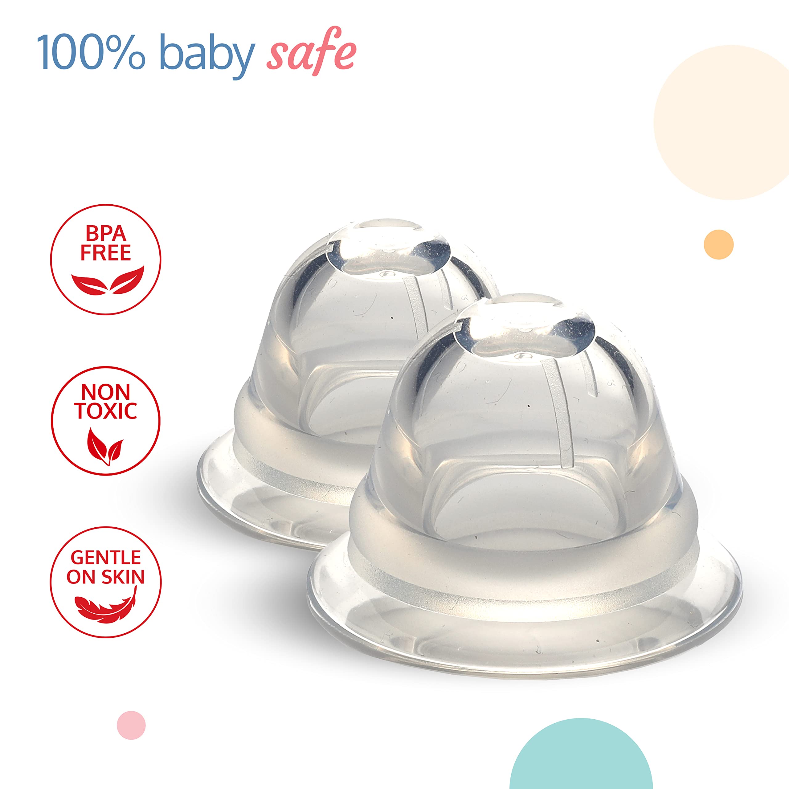 Soft silicone pullers to gently draw out inverted flat or shy nipples to make latching easier