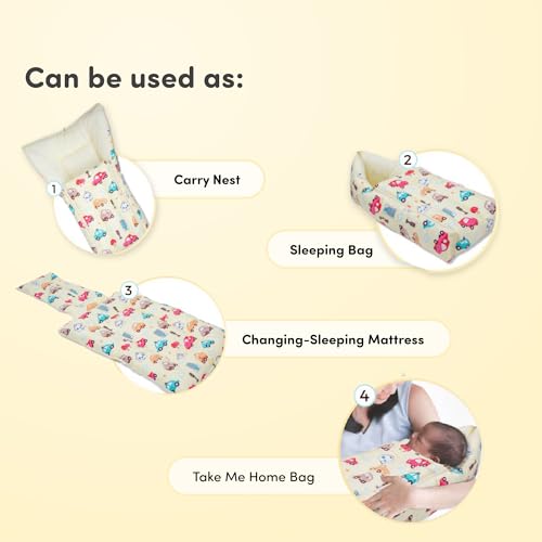 HomeBabyNurseryBaby BeddingMylo Baby 4 in 1 Baby Sleeping Bag/Carry Nest with 3 Way Opening Zip | Soft & Snuggly Sleeping Bag for Baby | Cotton Baby Bed for New Borns & Infants - Happy Space