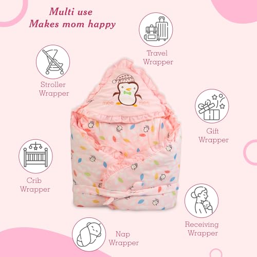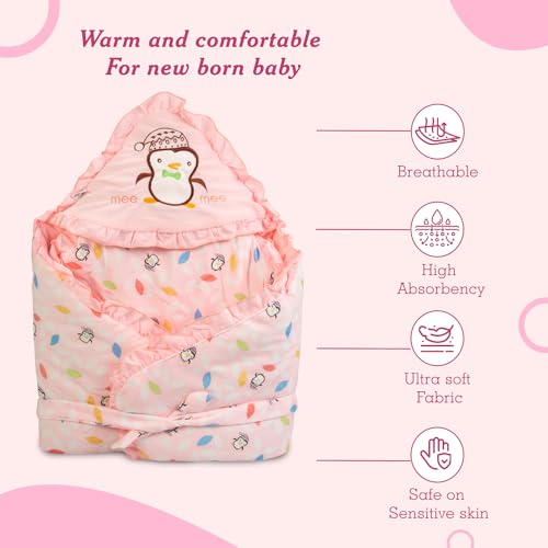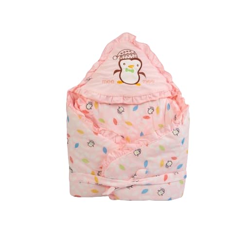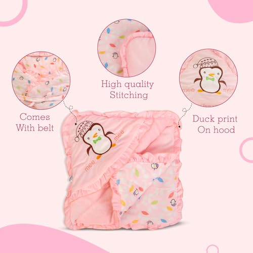 Mee Mee Baby Wrapper Blanket with Hood (Light Pink) (396.0mm L X 61.0mm W)