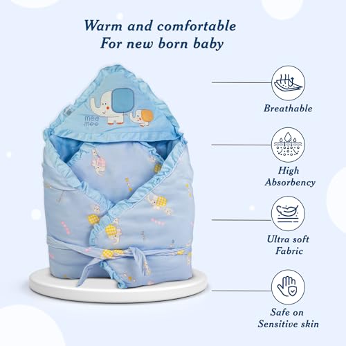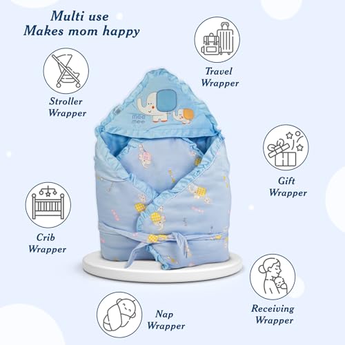 Mee Mee Cosy Cocoon Baby Wrapper with Hood, Stripes, Blue