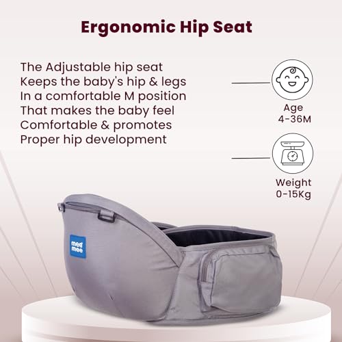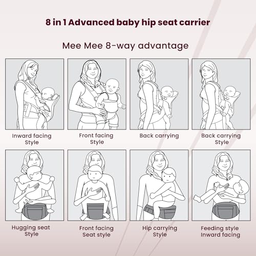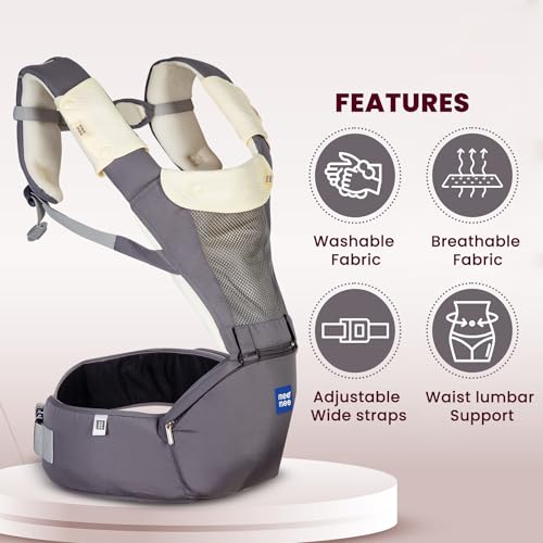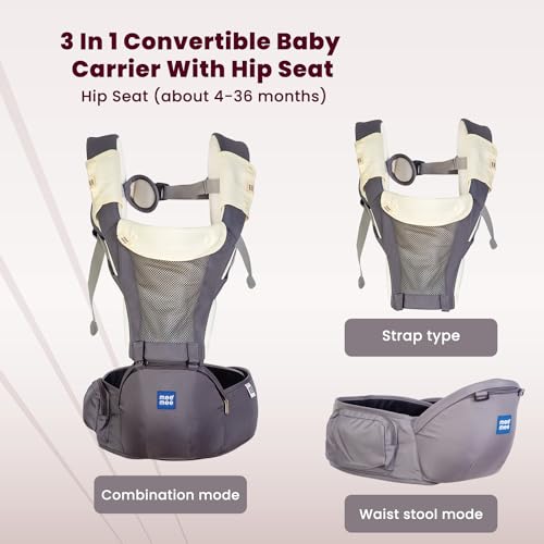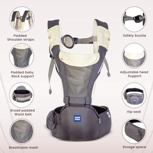 HomeBabyNurseryBaby SafetyMee Mee Comfy New Born Baby Carrier With 8 Baby carrying Modes Lightweight & Adjustable | Neck Support Baby Sling Carrier with Padded waist Support and shoulder support straps | safety buckle And Detachable Hip Seat for 0 to 3 Years (Grey)