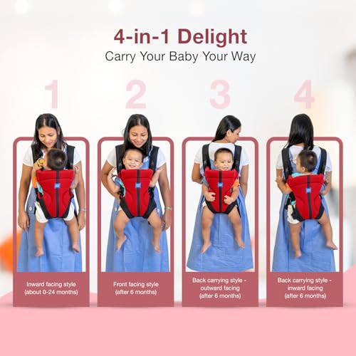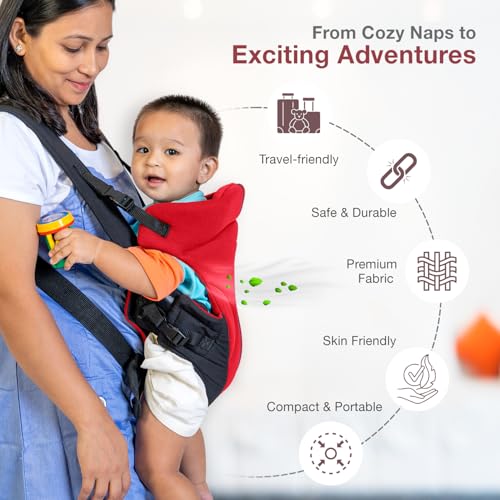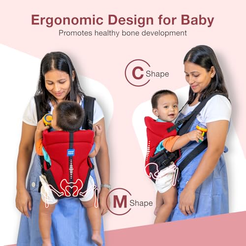 Mee Mee Elegant Lightweight & Adjustable Baby Sling Carrier with Padded Support, Safety Buckle, Waist Support Belt, Padded Shoulder Straps, for 0 to 24 Months Babies/Infants/Toddlers/Newborns (Red)