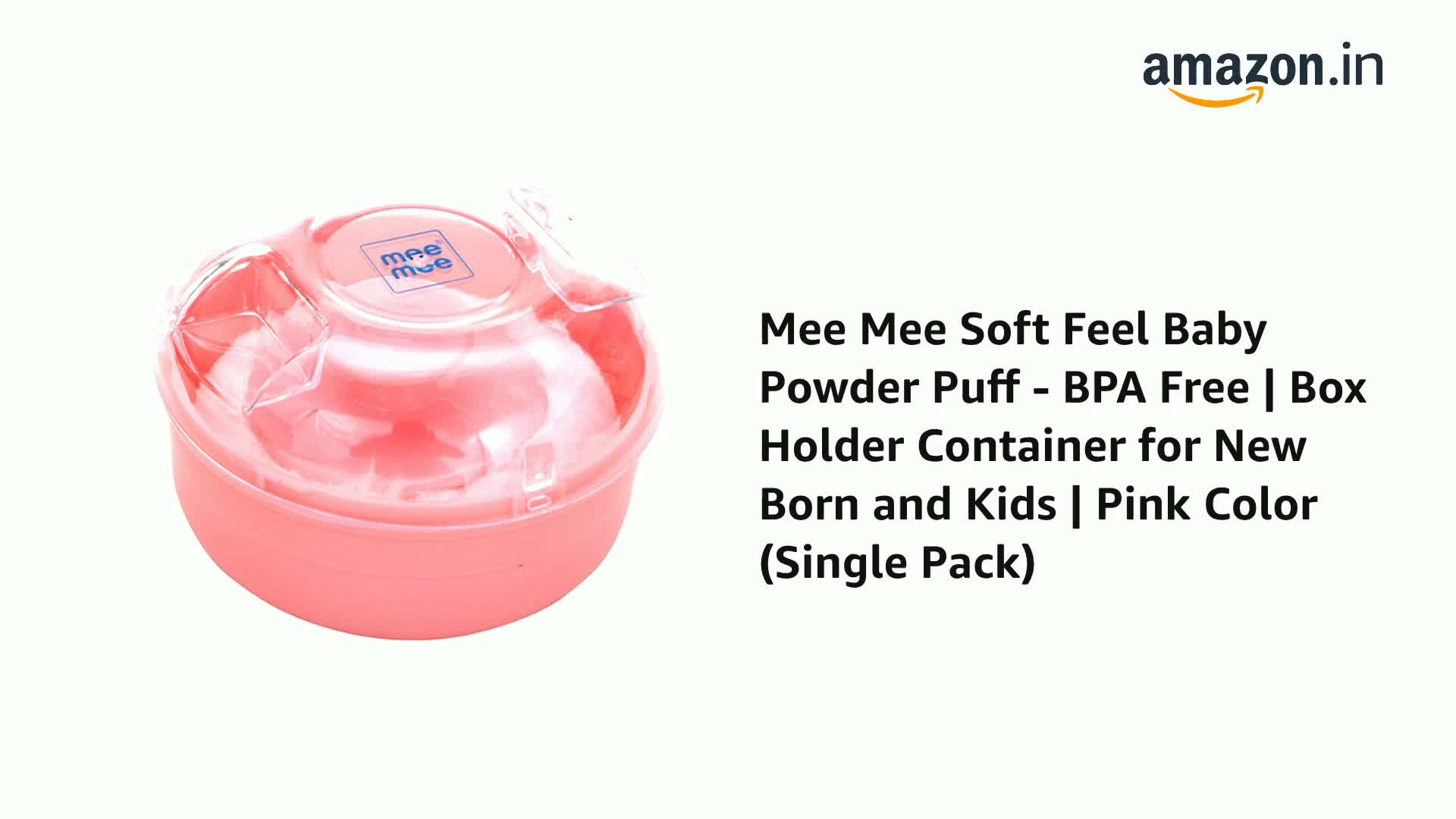 Mee Mee Soft Feel Baby Powder Puff - BPA Free | Box Holder Container for New Born and Kids | Pink Color (Single Pack)