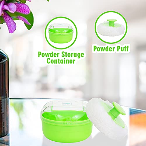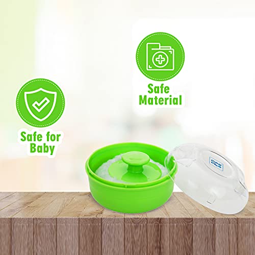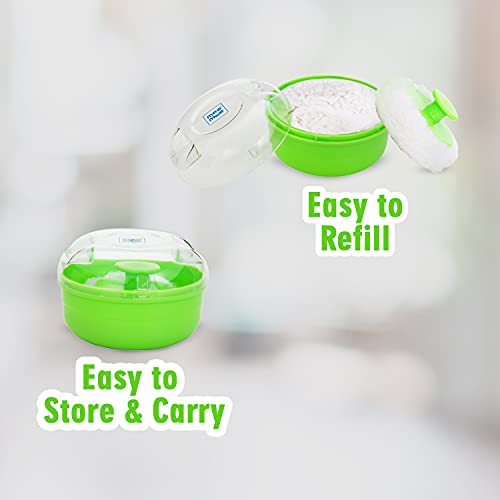 Mee Mee Soft Feel Baby Powder Puff - BPA Free, Green Color, Includes Storage Container (Single Pack)