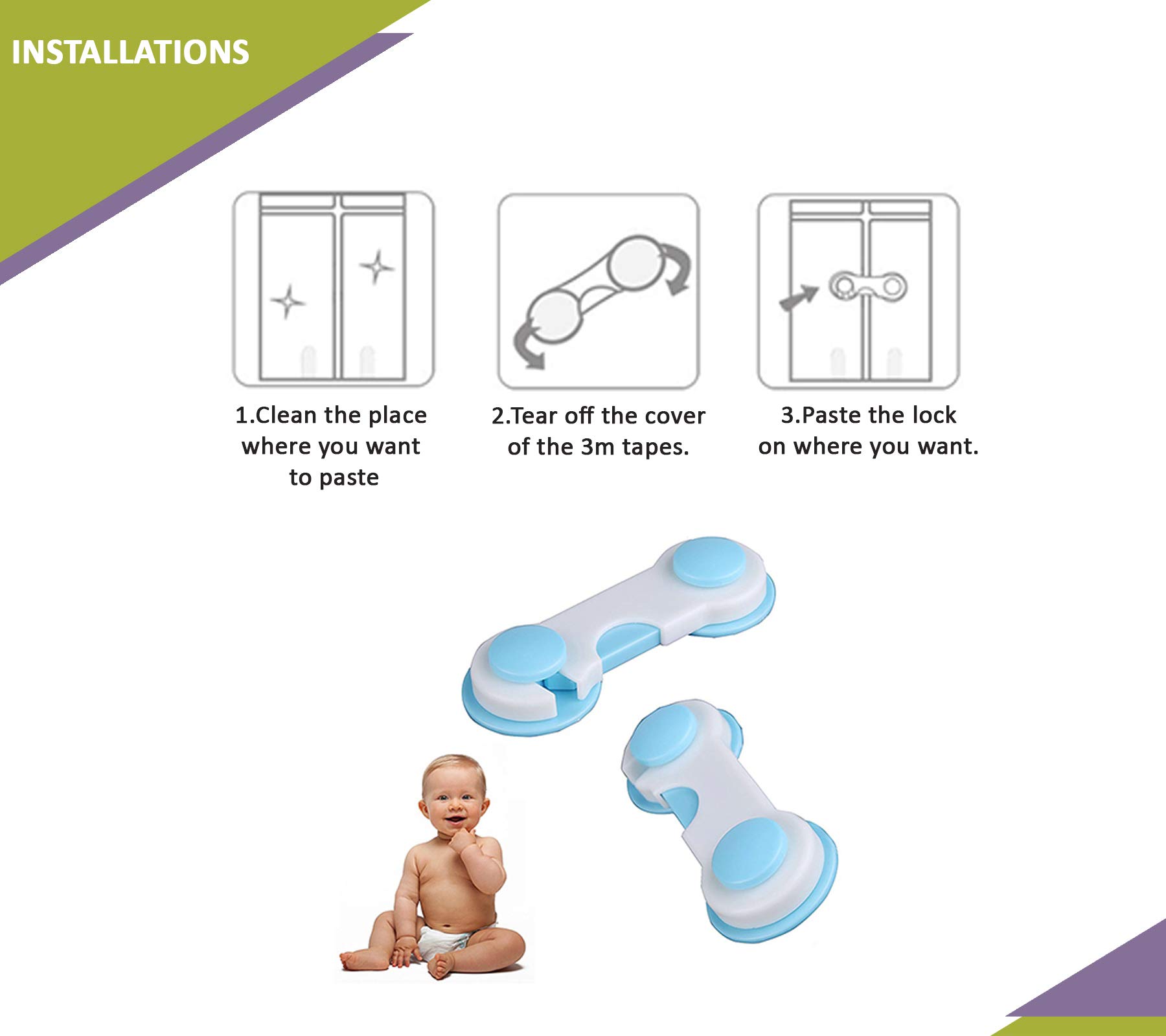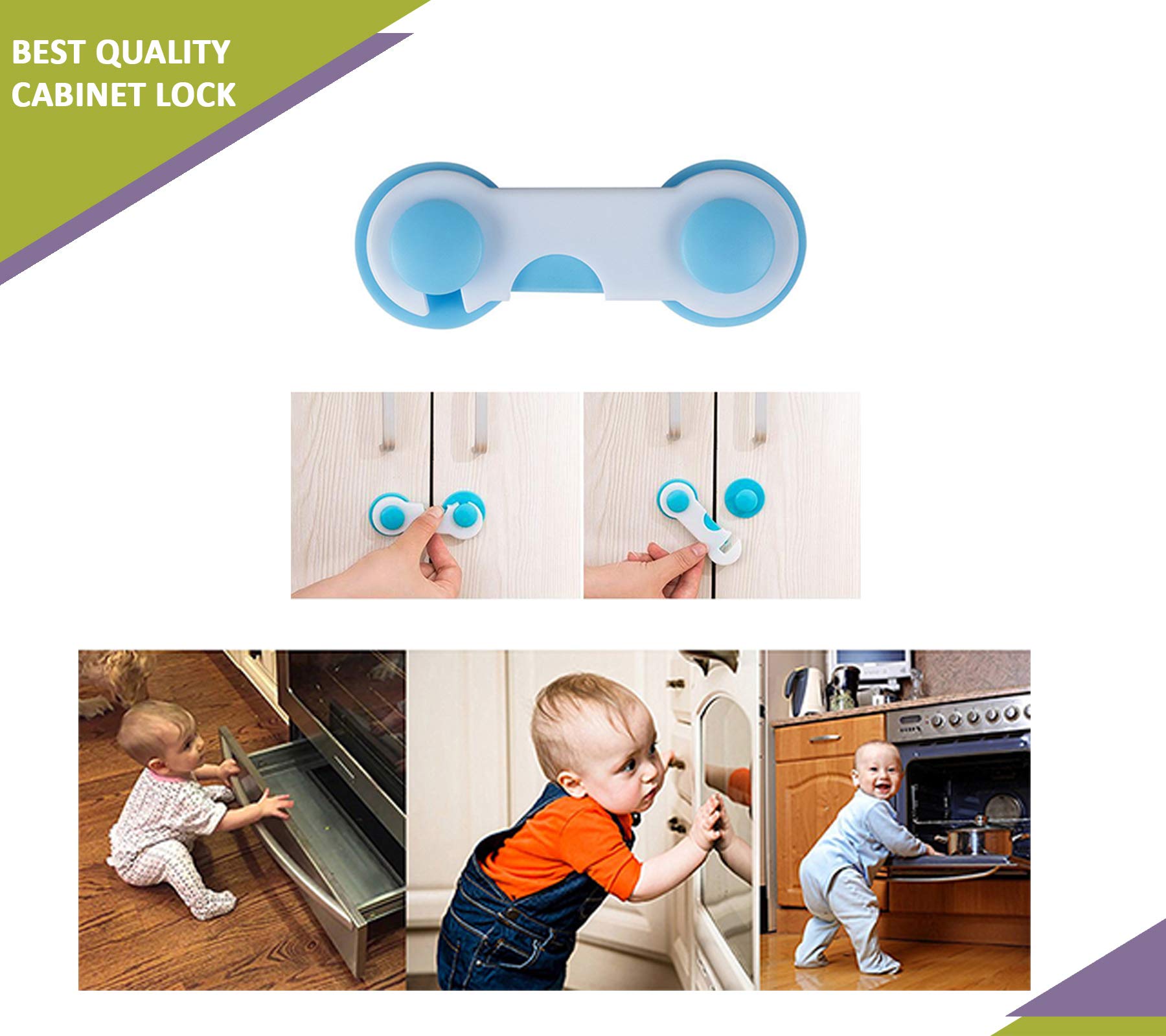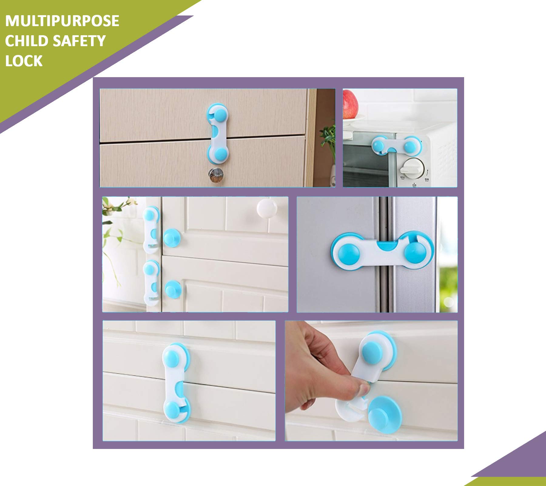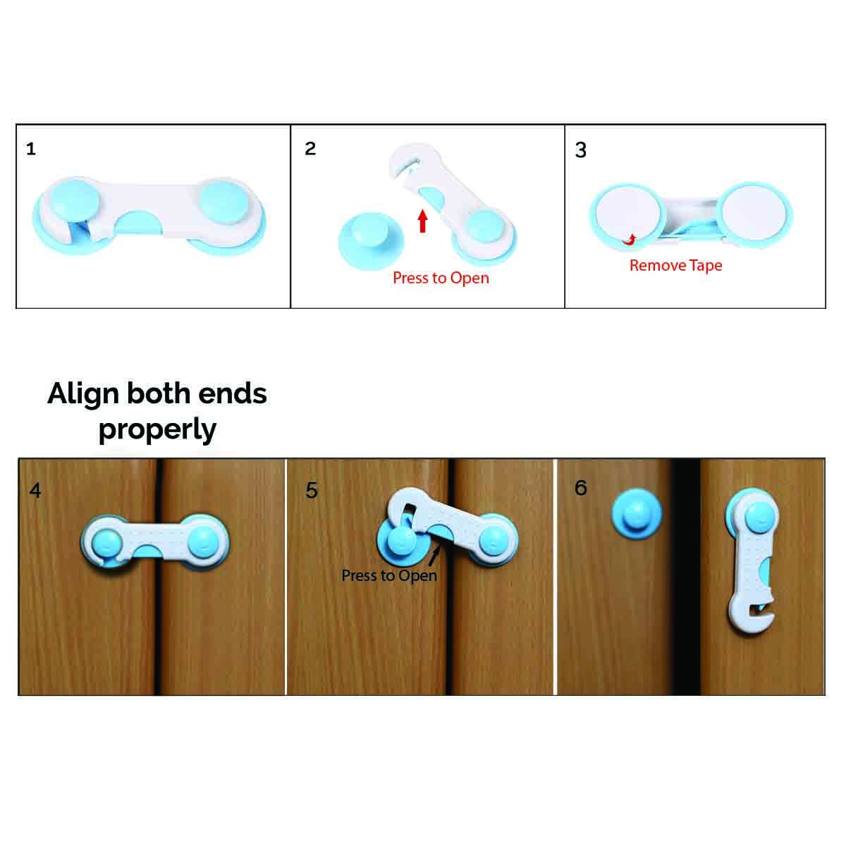 Safe-O-Kid - Pack of 1 - Easy to Use Dotted with Smiley Ends Child Proof Cabinet Lock Blue