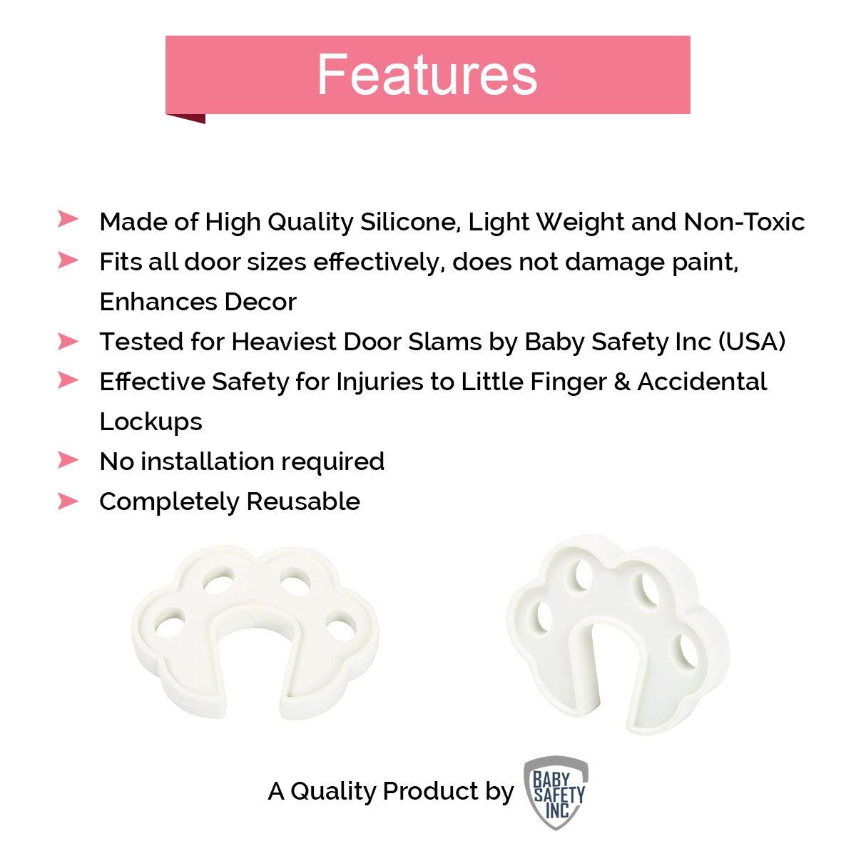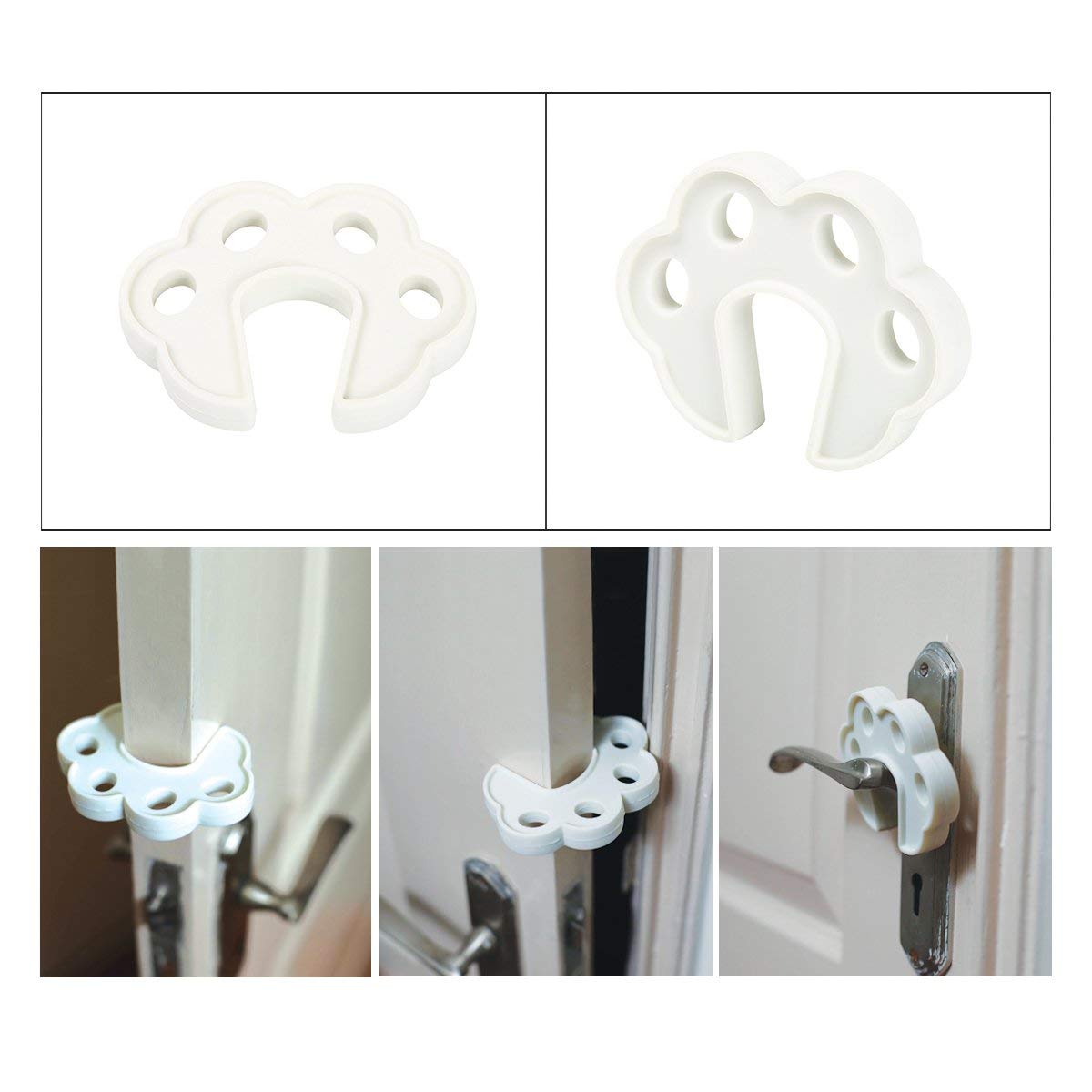 Safe-O-Kid - Pack of 4 - Fit-All Sleek Design Strong - Silicone Door Stopper-White Color
