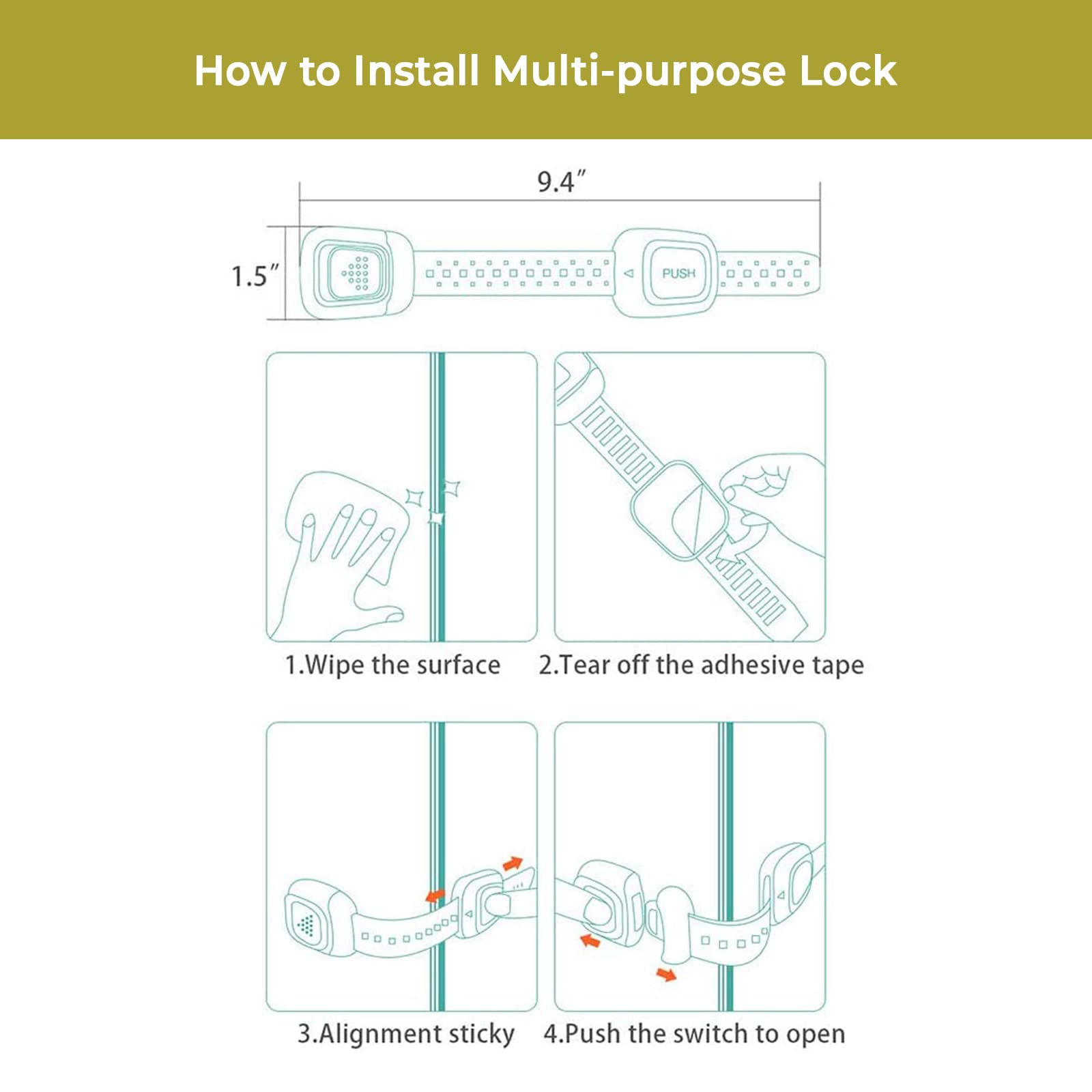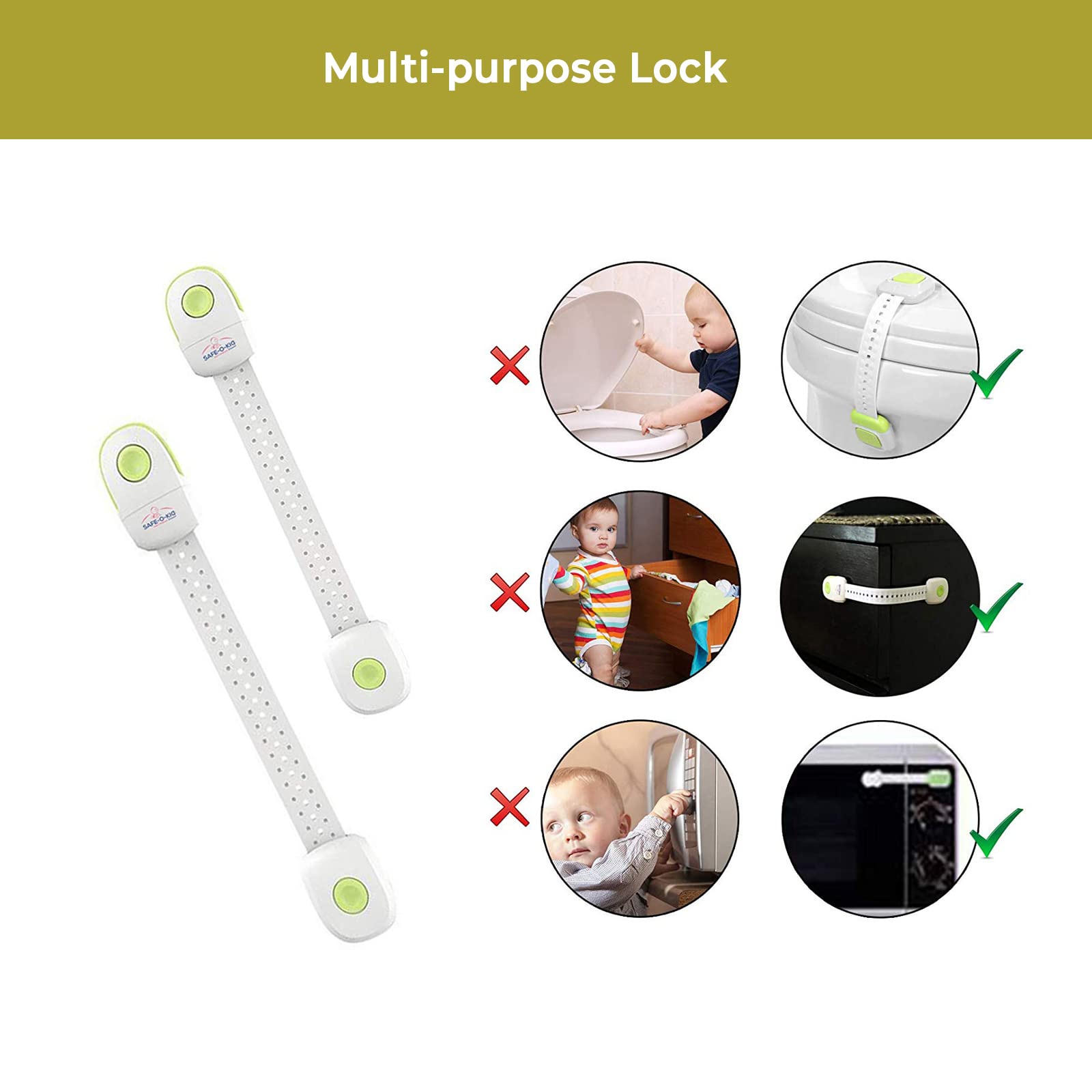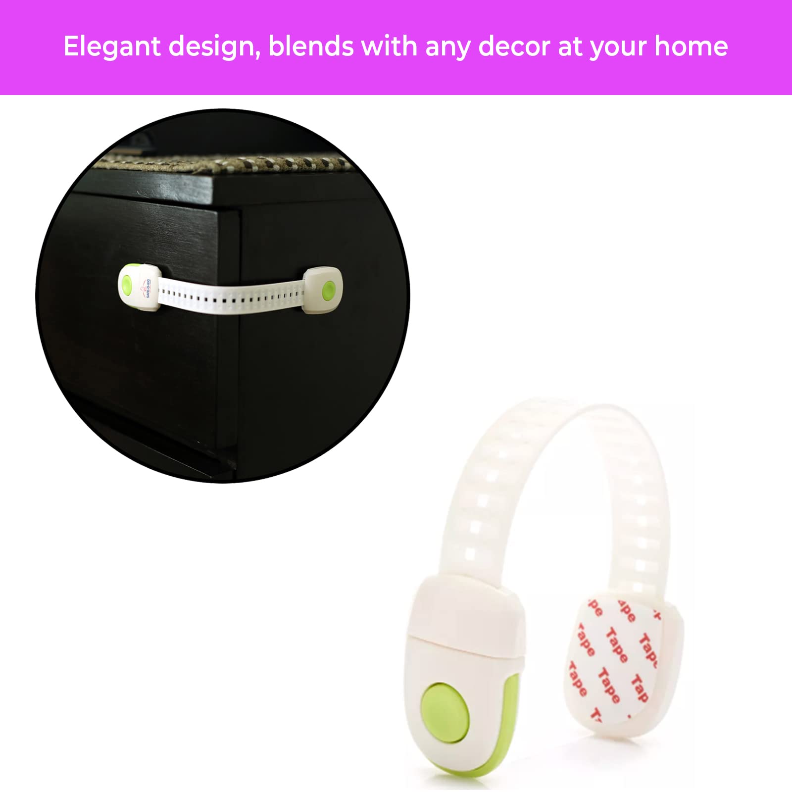 Safe-O-Kid Strong Multipurpose Lock Dual Color Cabinet/Drawer Lock (Green) - Pack of 8