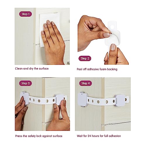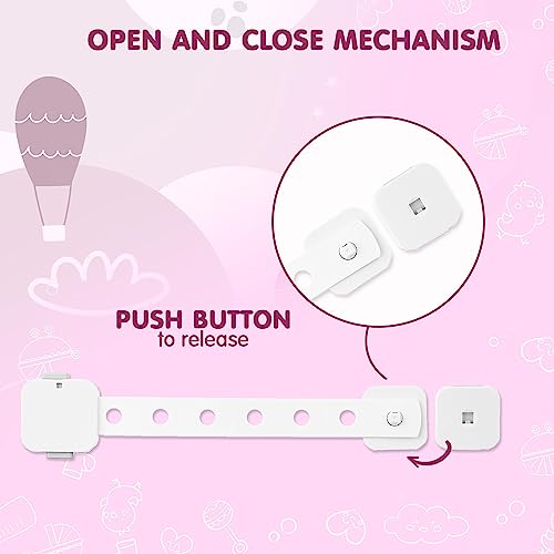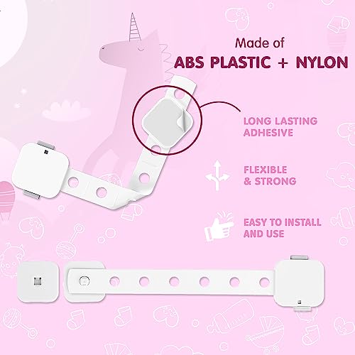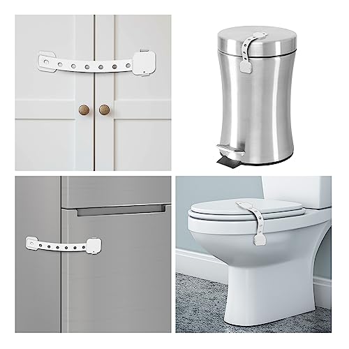 Versatile: These strap locks are suitable for use on cabinets dustbins refrigerator doors toilet seats ovens air fryers microwaves windows and more.