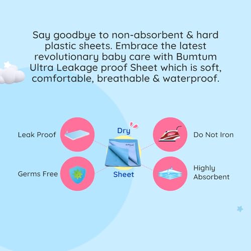 FOR BABY HEALTHY COMFORT: Babies need care love and undisturbed sleep. Bumtum Ultra Leakproof Sheet is specially curated for your baby. With this ultra leakproof sheet your baby will have a peaceful sleep.