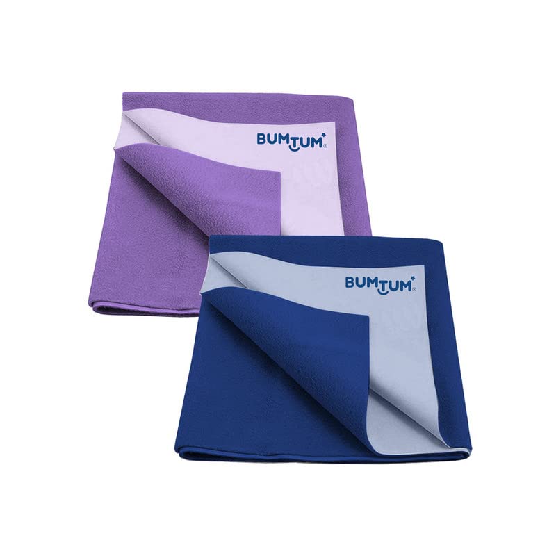 HomeBabyNurseryCrib SheetsBumtum Baby Dry Sheet Waterproof Quick Soft Fleece Baby Bed Protector | Anti - Bacterial & Odour Free | Extra Absorbant, Reuseable & Washable (Lilac + Royal Blue Combo, Large Size, Pack of 2)