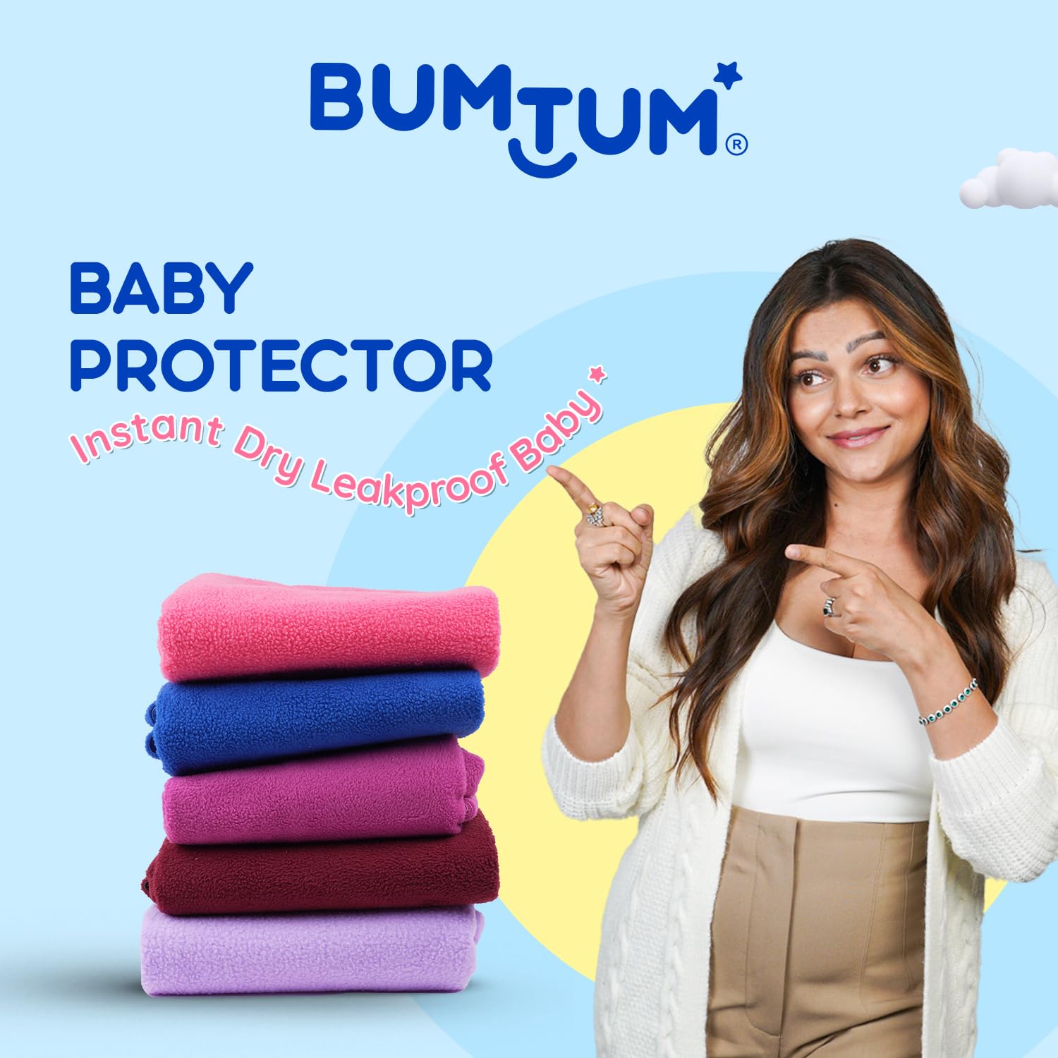 HomeBabyNurseryCrib SheetsBumtum Baby Dry Sheet Waterproof Soft Fleece Baby Bed Protector | Anti - Bacterial Extra Absorbant Reuseable & Washable (Maroon + Grape + Aqua Blue Combo Large Size 100 * 140cm Pack of 3)
