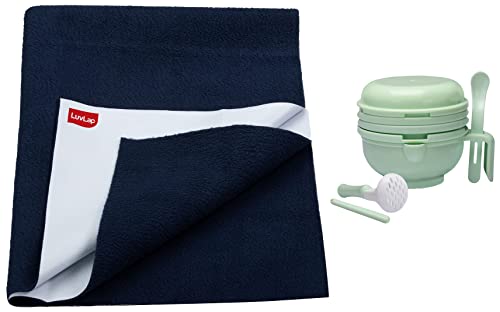 LuvLap 9 in 1 Baby Food Masher Mill (Light Green) & Instadry Anti-Piling Fleece Extra Absorbent Quick Dry Sheet for Baby Small Size 100x140cm Pack of 1 Navy Blue