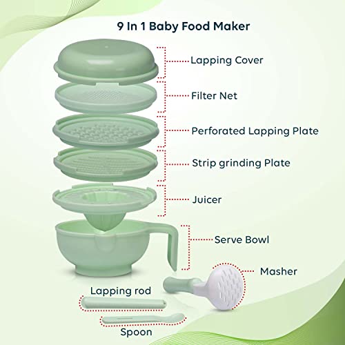 LuvLap 9 in 1 Baby Food Masher Mill (Light Green) & Instadry Anti-Piling Fleece Extra Absorbent Quic