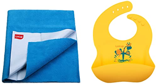 LuvLap Instadry Anti-Piling Fleece Extra Absorbent Quick Dry Sheet for Baby Small Size 100x140cm Pack of 1 Royal Blue & Silicone Baby Bib for Feeding & Weaning Babies & Toddlers (Yellow)