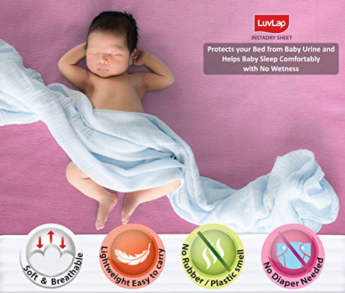 LuvLap Instadry Extra Absorbent Dry Sheet/Bed Protector - Baby Pink 0m+ - Small 50 x 70cm & LuvLap I