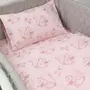 Duvet cover, pillow cover and fitted cot sheet sold as a set in a printed organic cotton tote bag.